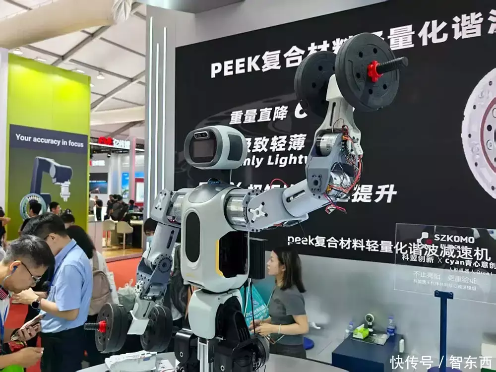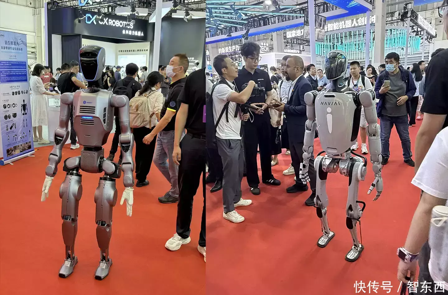许多不做人形机器人本体的展商,也摆出人形机器人来装点门楣。美的虽然没参展,但把它的首款人形机器人放在了旗下工业机器人企业库卡的展台。