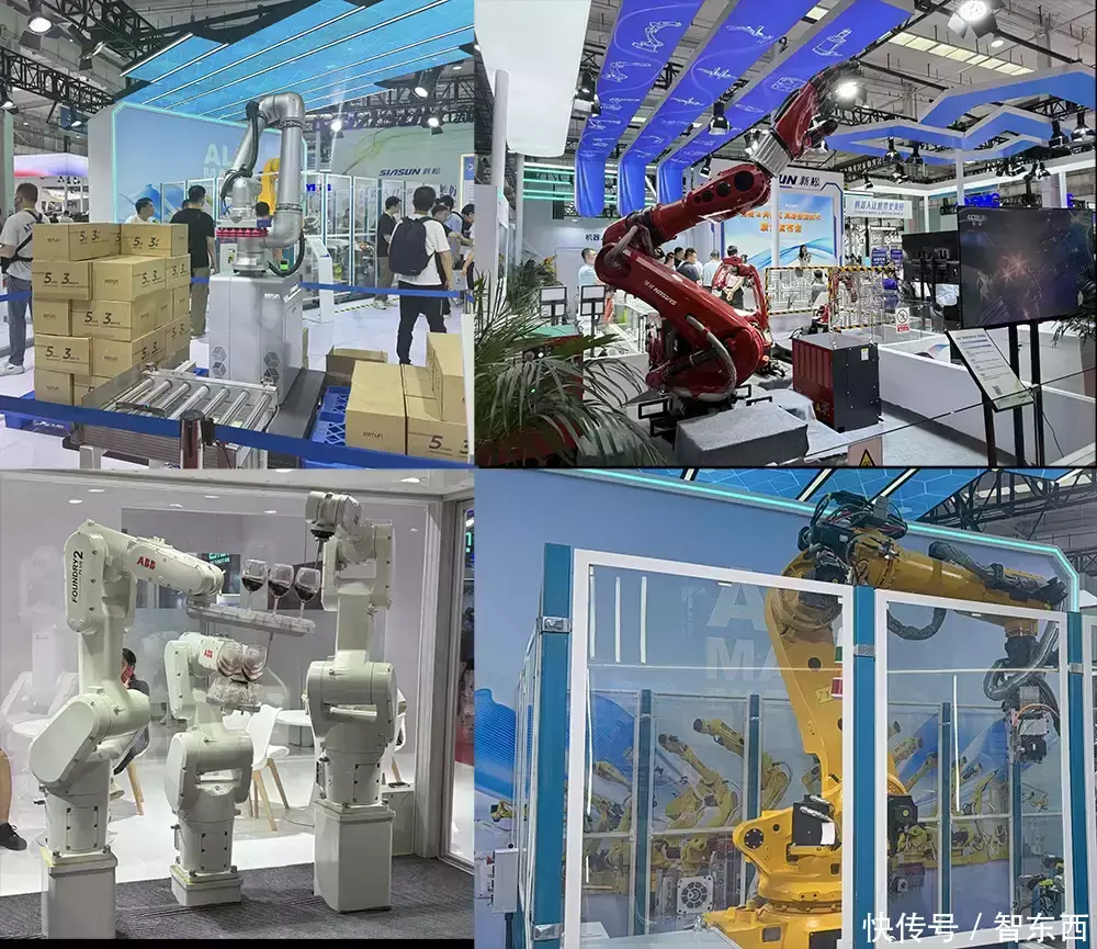 在工业机器人展台,几乎所有的机械臂都在移动。