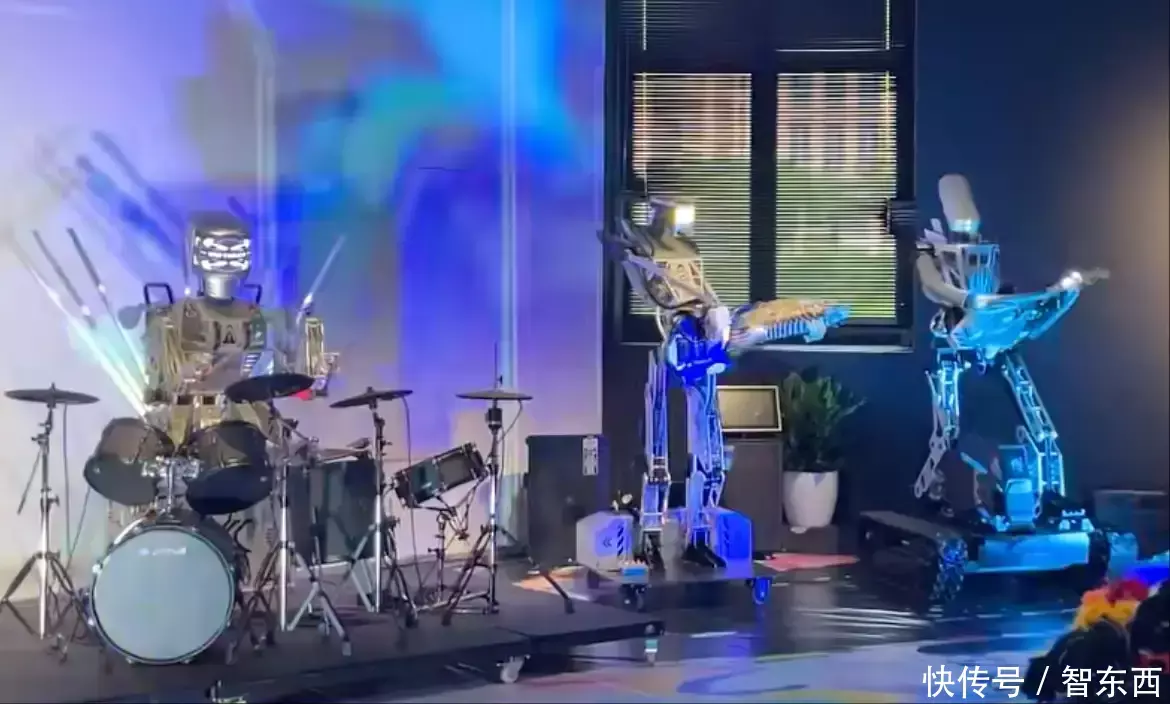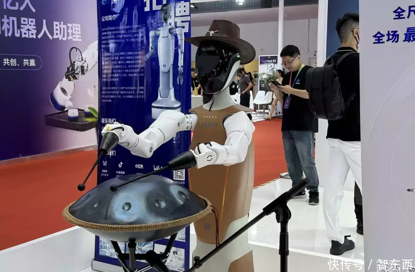 还有多款机器人秀才艺。星动纪元的机器人展示360°旋转跳、街舞Breaking。魔法原子让多台人形机器人和机器狗表演群舞。杭州海创人形机器人创新中心的机器人弹奏钢琴。中科慧灵的灵宝CASBOT02则打起了鼓。