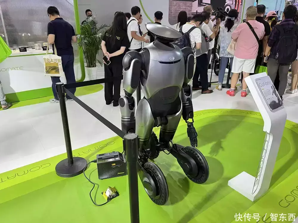 广汽集团的人形机器人颇具车企风范,第三代人形机器人GoMate可切换两轮、四轮模式,大轮子很显眼。
