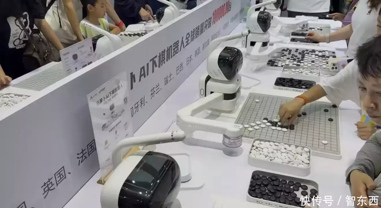 商汤科技的展台是小朋友聚集地。许多小朋友跟元萝卜AI下棋机器人对弈得不亦乐乎。