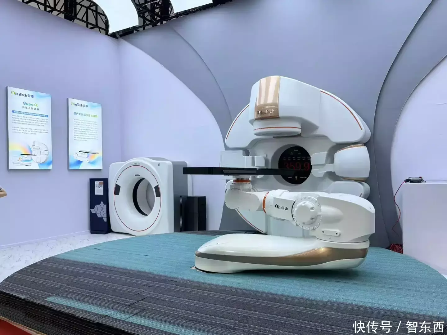 雷泰医疗展出的SuperX机器人加速器,能够实现检测和跟踪肿瘤位置,对肿瘤部位进行自适应精准治疗。强联智创AI导管塑形机器人UMate极智版用AI赋能脑血管精准治疗,长木谷展出了ROPA骨科智能手术机器人。