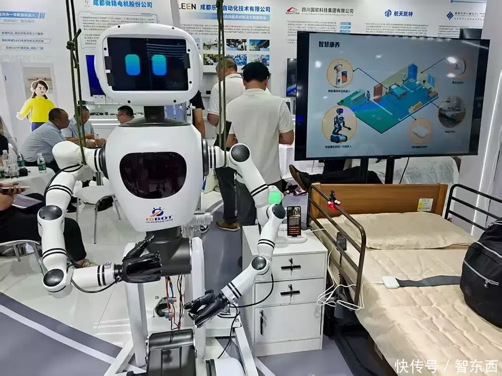 面向智慧康养场景,成都人形机器人创新中心展出了照顾老人、居家陪伴的具身智能机器人。