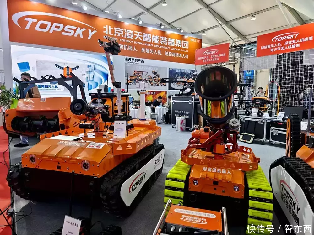 凌天智能集团展出了防爆消防特种作业机器人,现场还有水下机器人实际作业演示和无人机钻圈表演。曼大智能也展出防爆机器人产品。