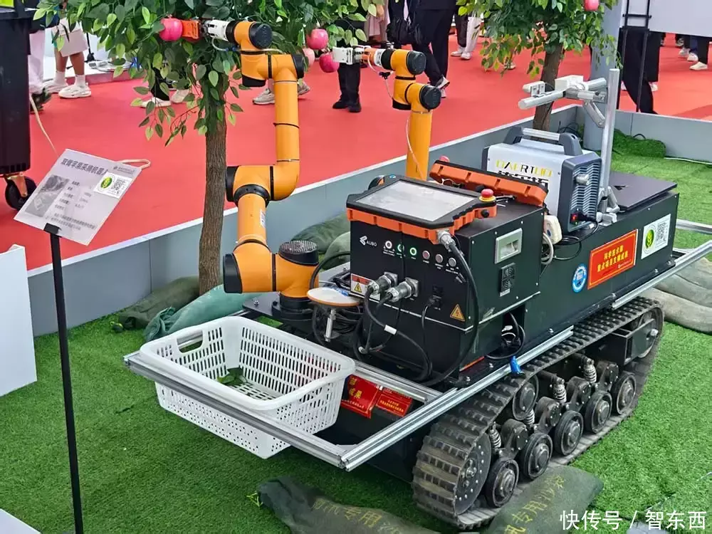 农业机器人展台的双臂苹果采摘机器人,大约每4.3秒能采摘一个苹果。北京市农林科学院自研的双臂草莓采摘机器人,集采收于一体,做到了损伤率低、识别度高、受光线影响小的采摘效果。国家农业智能装备工程技术研究中心更是汇聚了各种工种的农业机器人,包括种地、浇地、除草、割草、维护等。