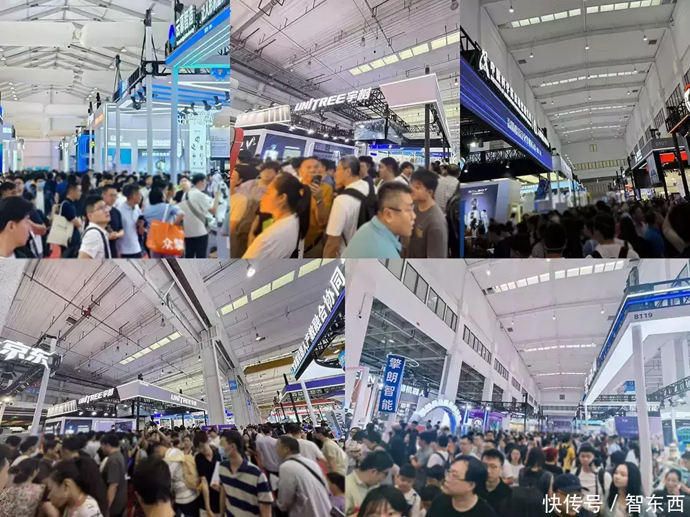 往届通常是工业机器人展台最大,今年的C位则被人形机器人当红创企占领。宇树、众擎、加速进化等有表演、互动的展台人流量尤其大,人挤人都看不到尽头。