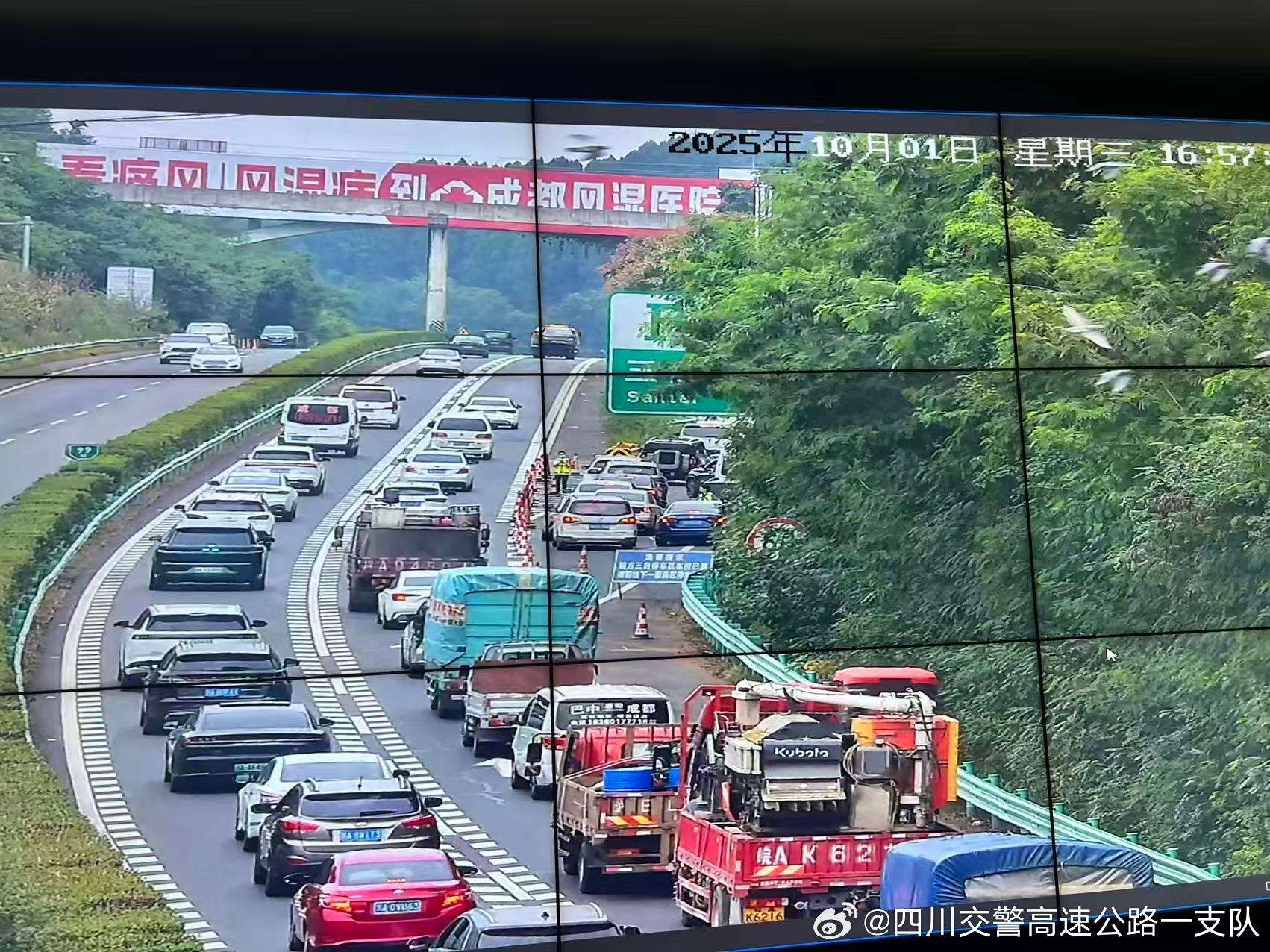10月1日国庆假期第一日,记者从四川高速公安一分局获悉,截至17时20分,成都周边高速部分路段车流量大出现排行情况。